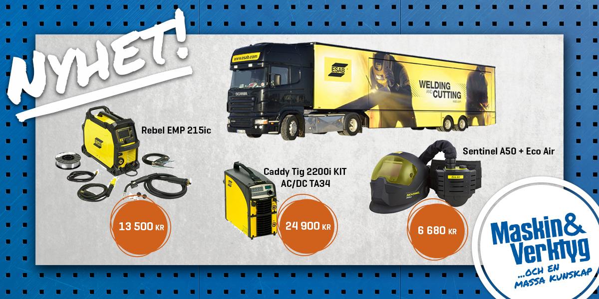 Vill du ta del av riktigt vassa erbjudanden och testa de senaste innovationerna inom svetsteknik? Då ska du se till att komma förbi oss på Maskin & Verktyg när ESABs demotrailer är på besök! Det kommer finnas många unika erbjudanden endast under dessa dagar.